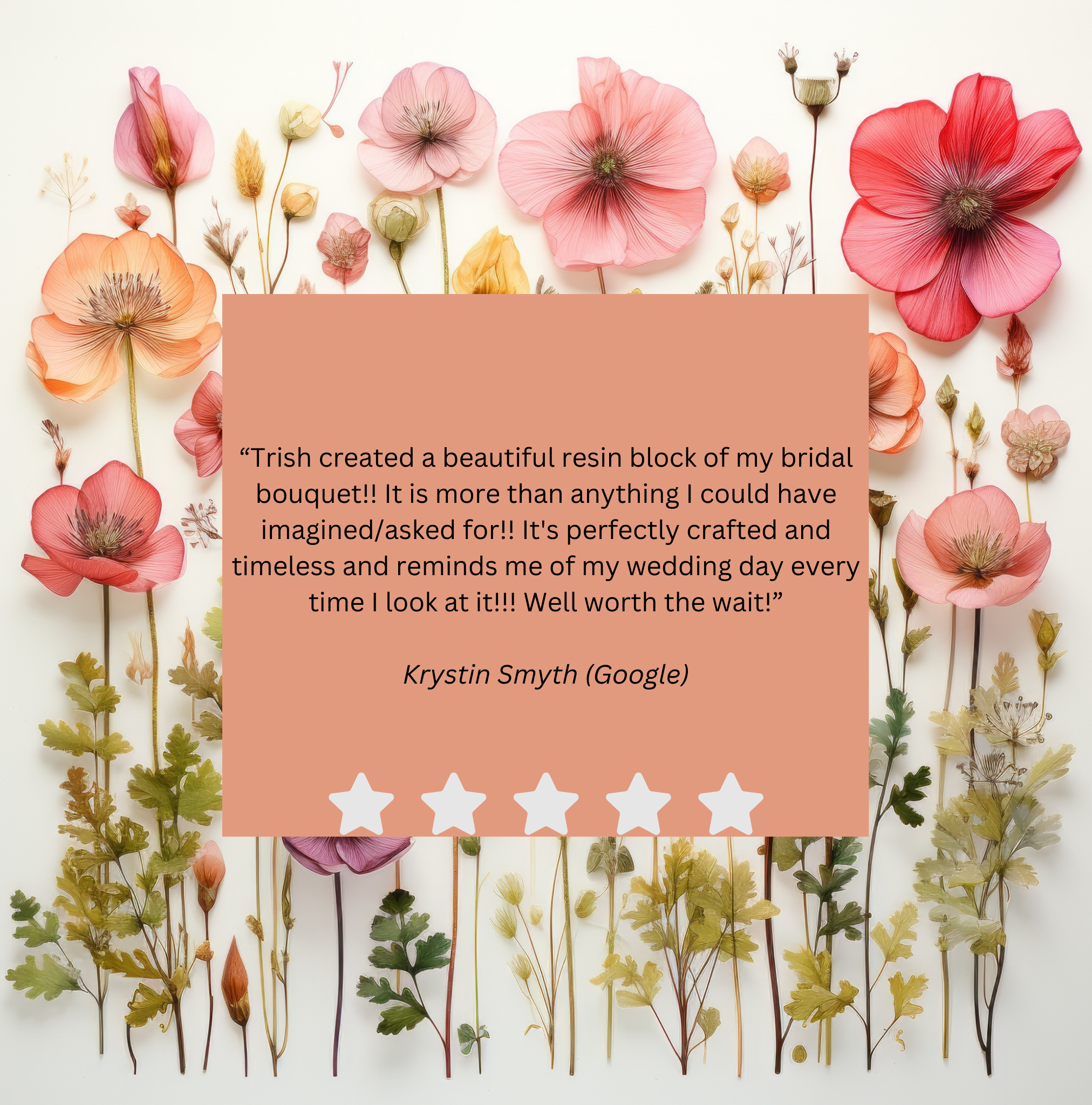 From pressed floral frames to resin blocks, trays, and heirloom pieces, every item we create is one-of-a-kind, just like your memories.